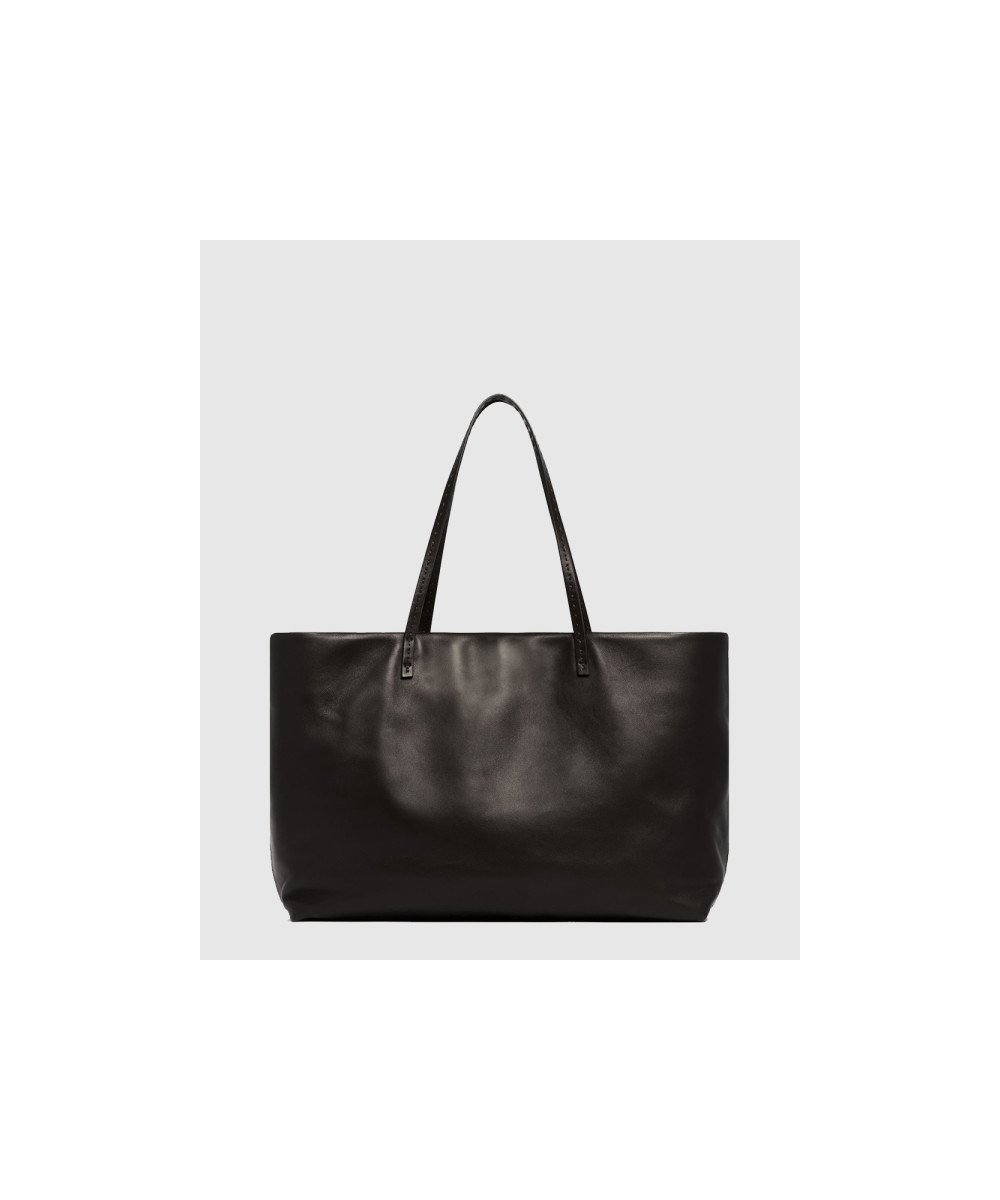 뉘앙스 블랙 레더 토트백 W1727L > 더로우