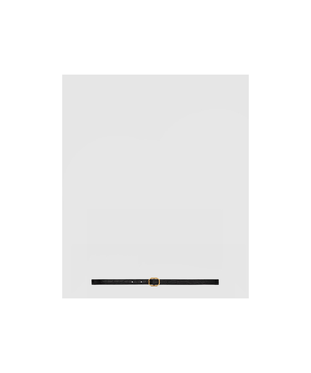 크로커다일 엠보스드 가죽 소재의 프레임 버클 슬림 벨트 732560 > 생로랑